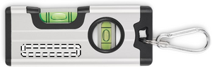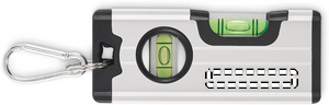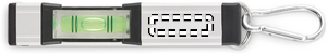 Mini magnetisk dobbelt vaterpas i aluminiumskasse med karabinhage. Karabinhagen er ikke beregnet til klatring (ikke-professionel brug).