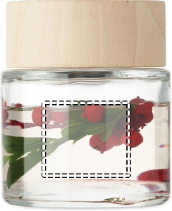 Glaskrukke med træduftspreder med blomsterdekoration indeni, med 6 rørstang. Duft: vanilje. Kapacitet: 100ml.