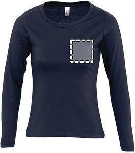 SOL'S MAJESTIC langærmet Dame T-shirt med forstærket halssting, lidt bredere hals med ribstrikket krave med elastan, lige manchetter, rørstrik. Kvalitet: 150 g / m², enkelt jersey, 100% halvkæmmet ringspundet bomuld. OEKO-TEX®. Størrelser S-XXL. Sælges kun med tryk