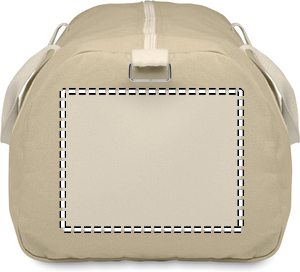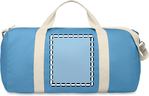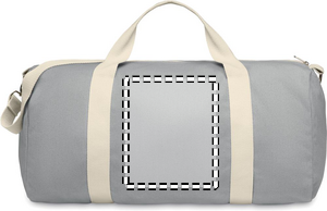 Duffeltaske i genbrugsstof (60 % genbrugsbomuld, 40 % genbrugspolyester) i 320 g/m² med håndtag i naturbomuld og en justerbar og aftagelig skulderrem.