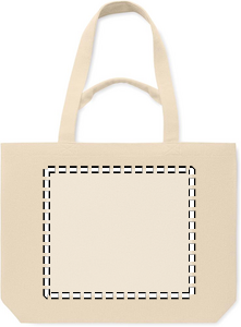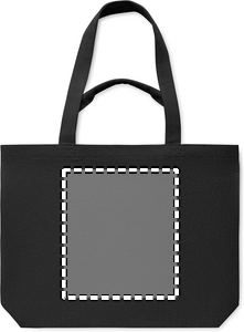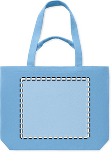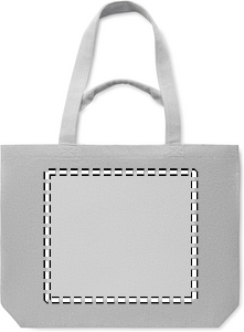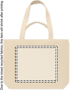 Shopping-/strandtaske i genbrugsstof (60 % genbrugsbomuld, 40 % genbrugspolyester) med kort og lang hank. 320 gr/m².