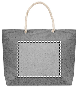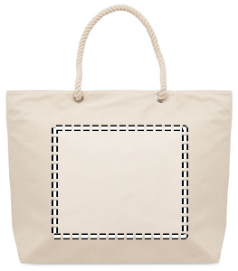 Strand- eller indkøbspose i genanvendt bomuld (80% recycled cotton, 20% regular cotton)med snorhåndtag. 220 gr/m².