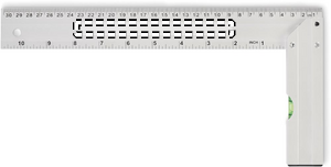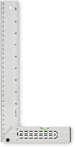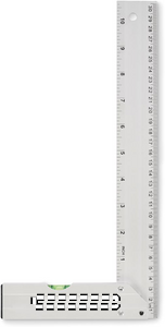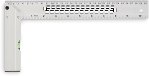 Prøvevinkel i aluminium med vaterpas. Lineal 30 cm.