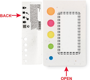 Klistermærker af frøpapir med 5 farvede faner. Brug dette uundværlige kontorudstyr til at holde dig organiseret og til at notere vigtige opgaver eller meddelelser. Disse klistermærker er unikke, fordi omslaget er fyldt med hvide valmuefrø. Når alle klistermærkerne er brugt, kan du plante omslaget i jord for at dyrke disse smukke blomster.