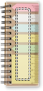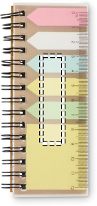 Memopad i PP med sticky notes og 5 sidemarkører i forskellige farver i genbrugspapir. Ringbånd.
