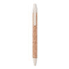 Tryk knap kuglepen med kork penkrop og miljøvenligt hvede / halm (50%) og ABS plastik (50%) fittings. Blåt blæk.