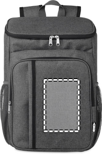 Køletaske designet som en picnic-rygsæk i 2-farvet 600D RPET med tilbehør til 2 personer. Indeholder kniv i rustfrit stål og gaffel, ske og kop i blandinger af PP.
