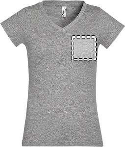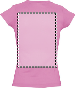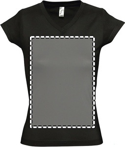 SOL'S MOON Dame T-shirt med en lidt dybere V-hals og morderne figursyet model med sidesøm, forstærket nakkesøm. Kvalitet: 150g / m² 100% halvkæmmet ringspundet bomuld, OEKO-TEX®. Størrelser S-3XL. Sælges kun med tryk