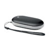 Elektrisk håndvarmer i aluminium med 3 varmeniveauer (45 °C, 50 °C, 55 °C) og indbygget 5000 mAh powerbank. Dobbeltsidet opvarmning, Type-C input/output, USB-A og DC5V/2A output og opladningskabel medfølger.