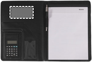 Imiteret læder A4 portefolio med solcelle regnemaskine, kuglepen med blå skrivefarve og 20 sider notepad.