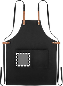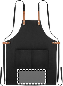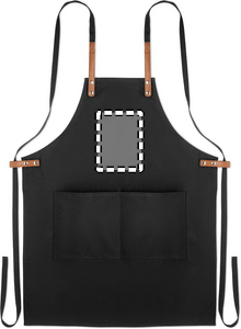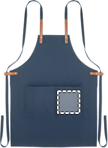Adjustable kitchen apron with 2 front pockets in 340 gr/m² organic cotton/canvas.
