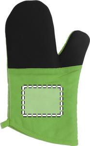 Nyttig køkken ovnehandske i bomuldsmateriale med en side gummi materiale. EN 407.