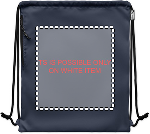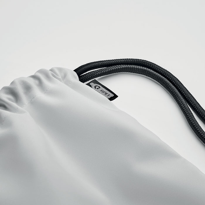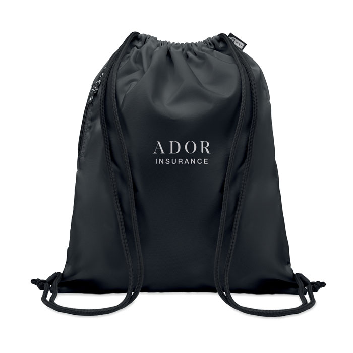 Stor taske med snor i 300D RPET polyester med sidelomme med lynlås på ydersiden. Tykke snore.