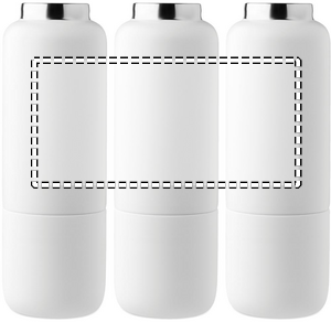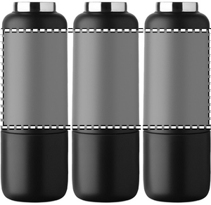 Dobbeltvægget isoleret flaske i 90 % genanvendt rustfrit stål og 10 % rustfrit stål, med integreret strophåndtag og ekstra lang strop (70 cm) i PP-låg. Lækagefri. Bundkop medfølger. Kapacitet: 500 ml.
