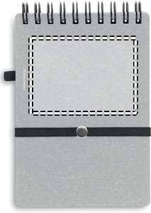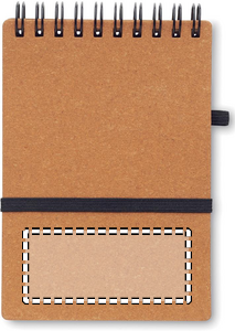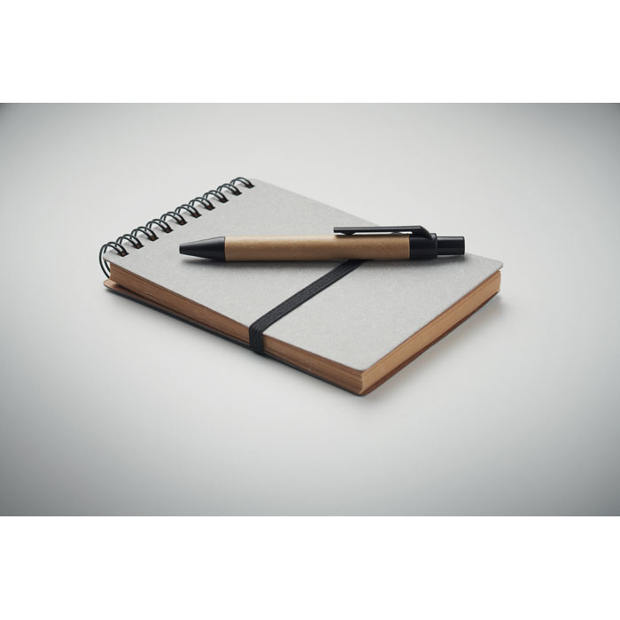 Genbrugspapir og PU-cover (70 % genbrugspapir og 30 % PU) notebook . Dobbelt tråd. 140 linjerede sider af genbrugspapir (70 ark). Matchende kuglepen med trykknap i genbrugskarton og ABS-dele. Blåt blæk. Elastisk lukkestrop og penneholder. FSC®-certified | FSC MIX CREDIT, P7.1, FSC-C213206