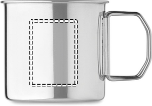 Enkeltvægget krus i rustfrit stål med foldbar hank. Kapacitet: 330 ml.
