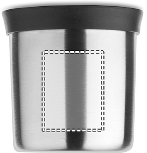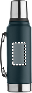 Dobbeltvægget vakuumisolerende flaske i genanvendt rustfrit stål (90 % genanvendt rustfrit stål og 10 % rustfrit stål) med håndtag på siden. Med PP-låg og kop af genanvendt rustfrit stål. Lækagefri. Kapacitet: 1L.