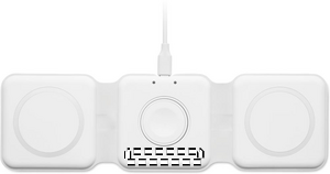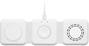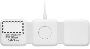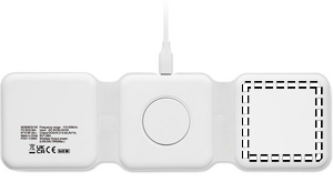 3 i 1 foldbar ladestation i ABS. Den har 3 trådløse opladningspunkter. Indgang: 2-i-1 Type-C og Type-A.