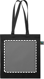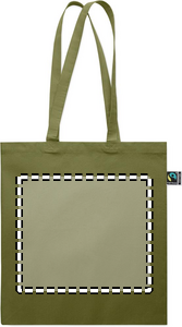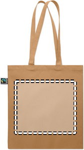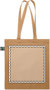 Indkøbspose med lange hanke og kile fremstillet af Fairtrade-bomuld. 180 g/m². Dette produkt er OEKO-TEX® STANDARD 100-certificeret.