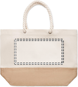 Strandtaske eller indkøbspose i lærred med snorhåndtag og jute detaljer. 280 gr/m².