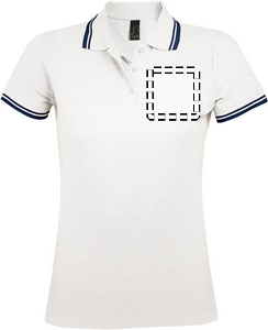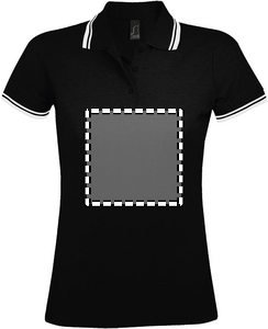 SOL'S PASADENA WOMEN, POLO-SKJORTE TIL KVINDER, 100 % ringspunnet bomuld PIQUÉ 200, ribkant 1x1 ved krave og manchetter, forstærkningsbånd ved halsen, korte ærmer, kontraststriber ved krave og manchetter, tone-i- tone knapstolpe med 3 knapper, tætsiddende pasform, skåret og syet, sideslidser, ekstra knap i indersømmen. For information om størrelsesmatchning henvises til størrelsesguiden i produktdokumentationen.