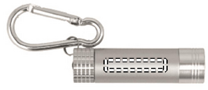 Mini aluminium og ABS LED nøglering. Logoet kan lasergraveres og lyset vil vise logoet. 4 LR44 batterier inkluderet.