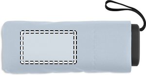 19-tommer 5-foldet manuel paraply lavet af 190T pongee med matchende pose. Den har et vindtæt stel af metal og glasfiber, sort gummieret håndtag med håndledsrem og en kompakt sammenfoldet størrelse på 17 cm.