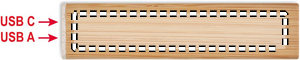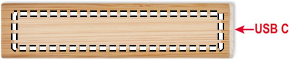 Powerbank 2600 mAh i bambusetui. Kapacitet til smartphone, udgangsstrøm DC5V/1A. Inklusive USB Type-C-opladerkabel med Type-A-adapter. Ind/udgang: USB Type-C.