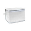 Aluminiumsfolie køle taske til 6 dåser. Ydre i non woven med hvidt trim. 80 gr / m2. Isolationsmateriale: Skum lamineret med aluminiumsfolie. Volume 3L.