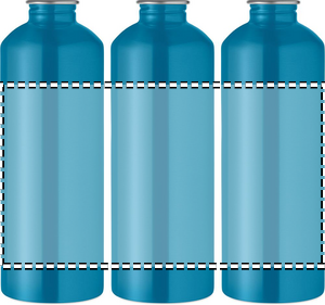 Enkeltvægget flaske (90 % genanvendt rustfrit stål og 10 % rustfrit stål) med PP-låg og karabinhage. Kapacitet 1000 ml. Da dette er en enkeltvægsflaske, kan der stadig forekomme varmeoverførsel.