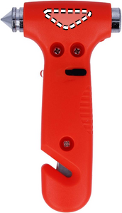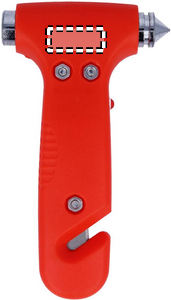 2 i 1 nødhammer med bæltekniv og LED-lys lavet i ABS. 3 AG3 batterier inkluderet.
