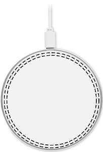 Trådløs oplader 10W i aluminium med glas på toppen. Tilslut enheden til din computer, læg smartphone på den og lad den oplade. Blå indicator lys, når den oplades. Output: DC 9V/1.1A. Kompatibel med nyeste androids, iPhone® 8, X og nyere.