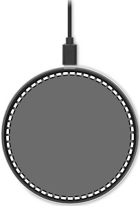 Trådløs oplader 10W i aluminium med glas på toppen. Tilslut enheden til din computer, læg smartphone på den og lad den oplade. Blå indicator lys, når den oplades. Output: DC 9V/1.1A.