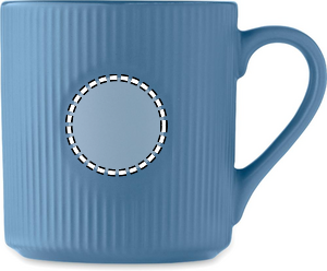 Ribbet keramikkrus i mat farve. Kapacitet: 340 ml.