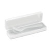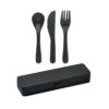 Re-usable PP portable cutlery set and case. Includes spoon, fork and knife. Reusable products help to contribute to a healthier planet. Take this portable cutlery set with you for your next meal outdoors.