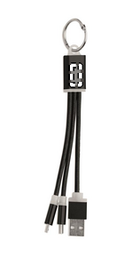 Key ring with charging cable with USB-A to Micro-B (2 in 1 pin) and Type C.