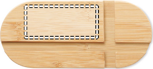 Bamboo tablet or smartphone stand. This natural phone stand can hold either smartphones or tablets in place. Ideal if you want to watch a movie or read something without having to hold the device. Bamboo is a natural product, there may be slight variations in colour and size per item, which can affect the final decoration outcome. FSC®-certified | FSC 100%, N5.7, FSC-C213206