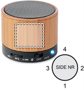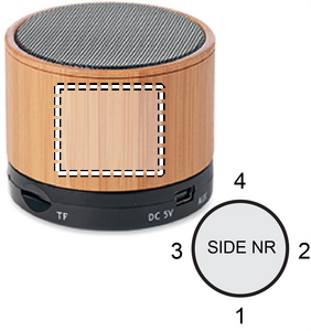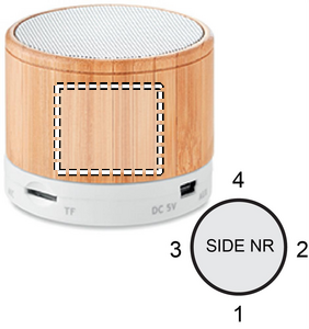 4.2 Trådløs højtaler i ABS med bambus kabinet og LED lys indikation. 1 Genopladeligt lithium 450 mAh batteri inkluderet. Inkluderer en SD-kortport og et AUX / USB-kabel. Håndfri opkaldsfunktion. Output data: 3W, 3 Ohm og 5V. Spilletid ca. 3t. Bambus er et naturligt produkt, og der kan forekomme variationer i farve, mønster og størrelse