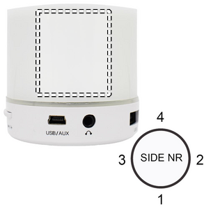 2.1 Trådløs højtaler med LED lys indikation i ABS. 3 farver skiftende lys. 1 Genopladeligt lithium 500 mAh batteri inkluderet. Inkluderer en SD-kortport og et AUX / USB-kabel. Håndfri opkaldsfunktion. Udgangsdata: 3W, 4 Ohm.