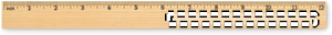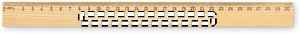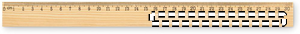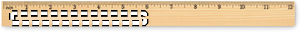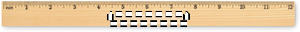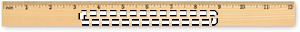 Lineal i fyrretræ, 30 cm, med centimeterskala på den ene side og tommeskala på den anden.