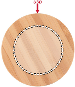 Trådløs oplader i bambus. Tilslut enheden til din computer, læg smartphone på den og lad den lade op. Blåt lys tændes ved opladning. Udgang: DC5V/1A (5W). Bambus er et naturligt produkt, og der kan forekomme variationer i farve, mønster og størrel