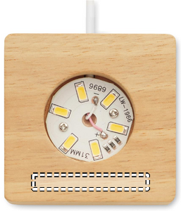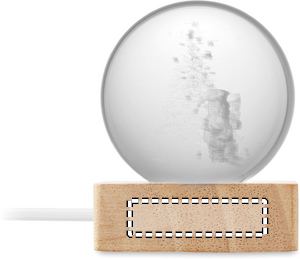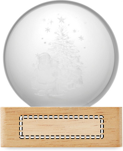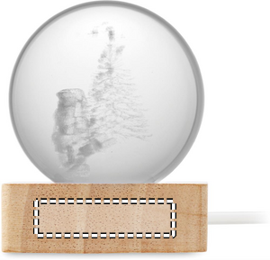 Julekugle med LED-lys (100 lumen) på base af gummitræ. Inkluderer et USB-opladerkabel (90 cm).