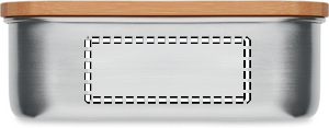 Madkasse I rustfrit stål med bambus låg og bestik med fastgørbart polyesterbånd. Kapacitet 600 ml. Bambus er et naturligt produkt, der kan være små variationer i farve og størrelse pr. Vare, hvilket kan påvirke det endelige udsmykningsresultat.