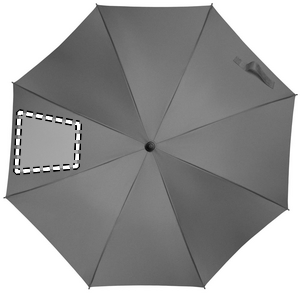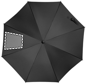 23 tommer automatisk åben vindtæt paraply i 190T polyester med glasfiberstel og sort belagt skaft og plastspidser. ABS-håndtag med gummifinish. Manuel lukning.