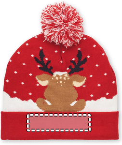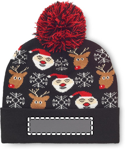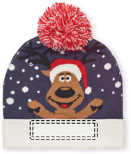 Julestrikket beanie med manchet og bolle i blødt strækbart akryl.