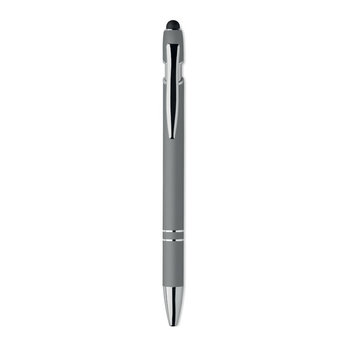 Kuglepen med stylus i genanvendt aluminium. Blåt blæk.