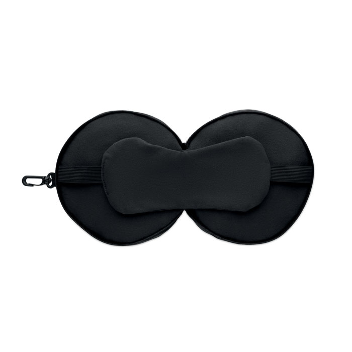 2 i 1 rejsepude med fastgjort øjenmaske.