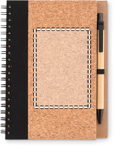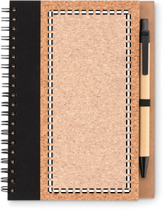 Cork cover notebook with 70 pages of lined recycled paper and ball pen with recycled carton barrel with corn PLA fittings. Black ink.