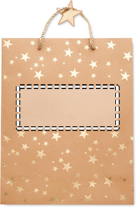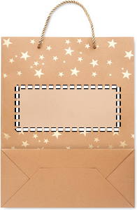 Elegant gift kraft paper bag with seasonal pattern. Gift tag included. 250 gr/m². This stylish and festive paper bag is the perfect packaging for a thoughtful gift for a special someone. Receiving a beautiful packaged gift is half the fun! FSC®-certified | FSC RECYCLED, P5.3, FSC-C213206