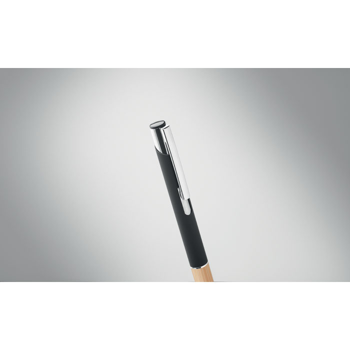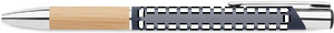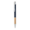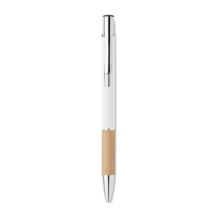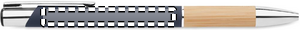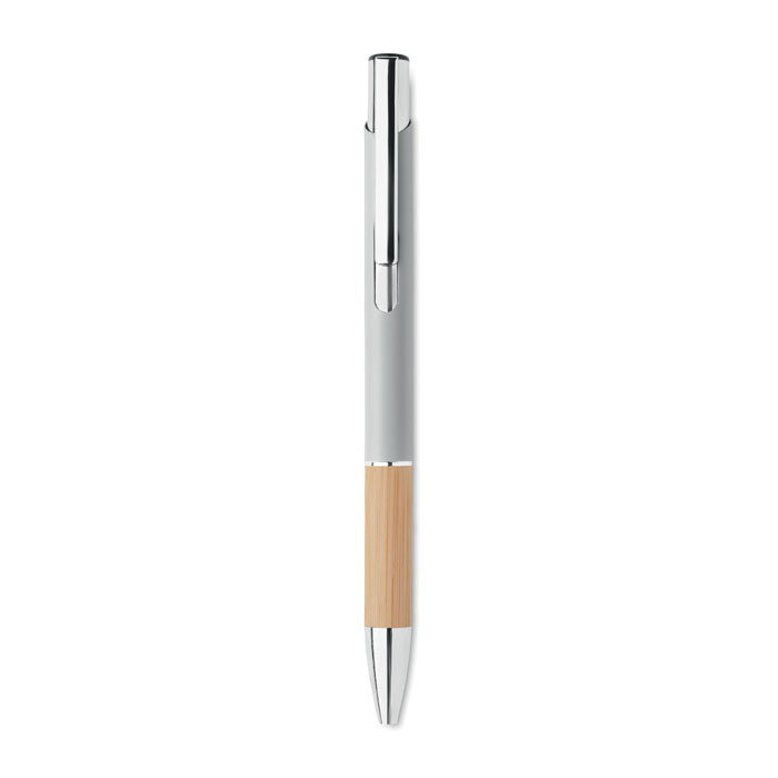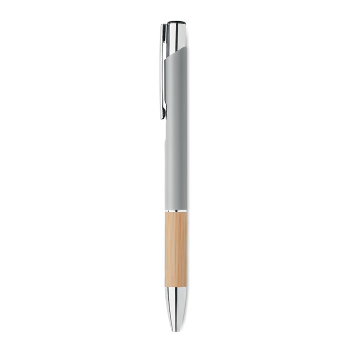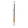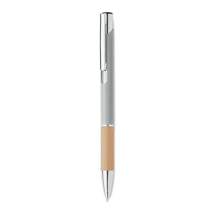 Kuglepen med trykknap i aluminium med bambusgreb. Blåt blæk.